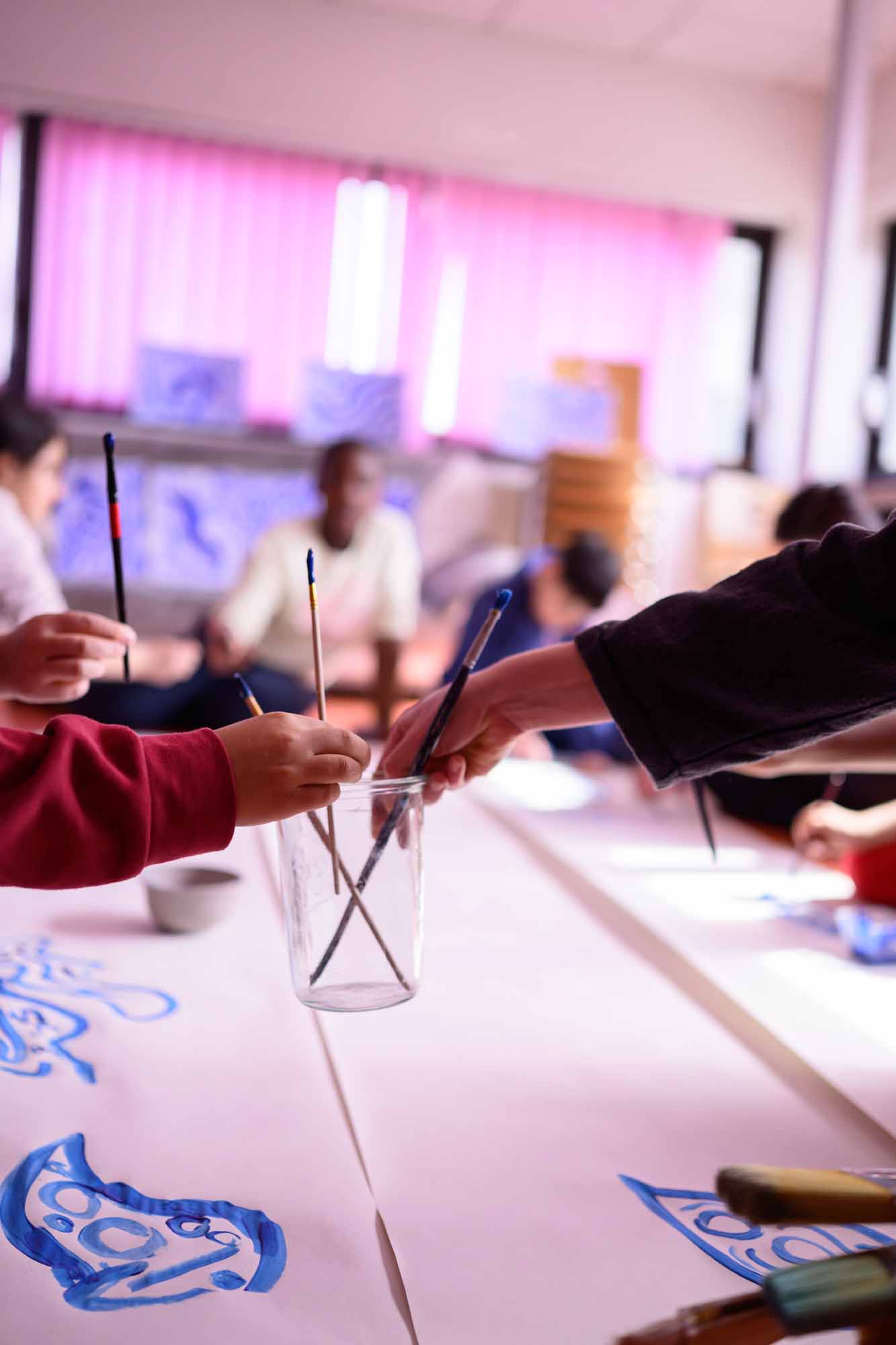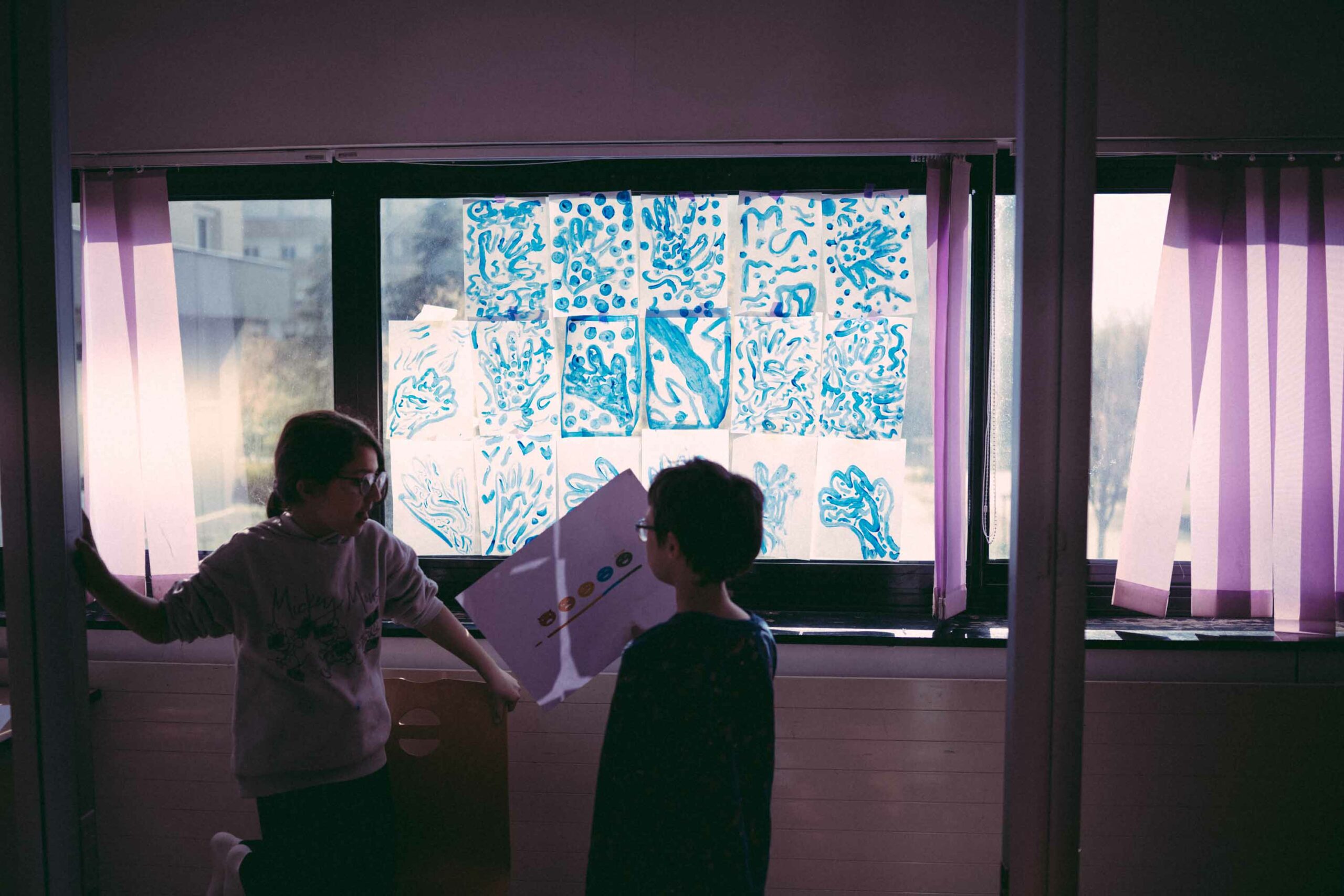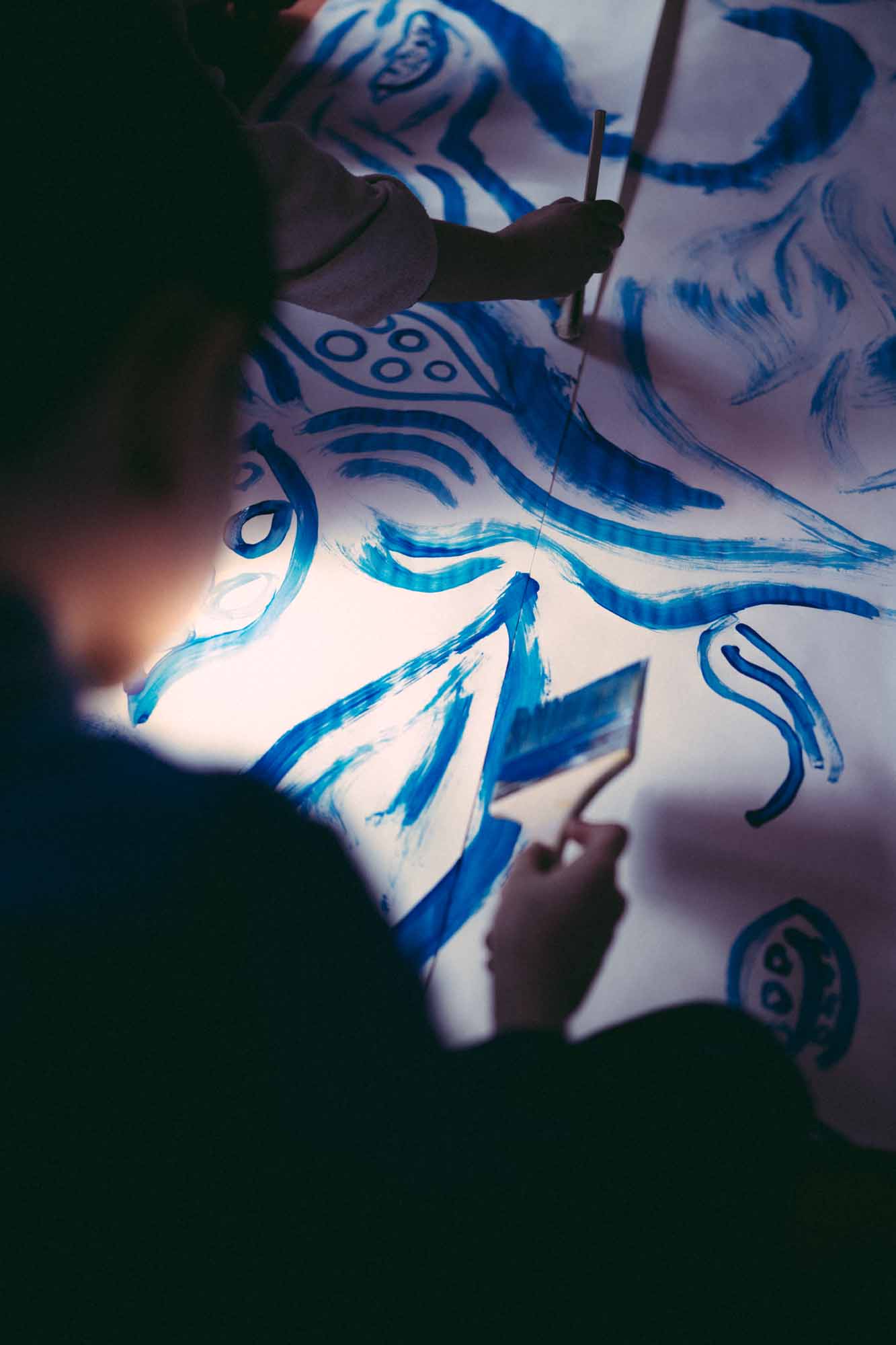 À chaque projet, elle se nourrit du lieu, des gens, des couleurs, et tisse une nouvelle peau. Une matière vivante, faite de gestes simples accumulés, qui finit par habiter l’espace au-delà de la fresque elle-même.